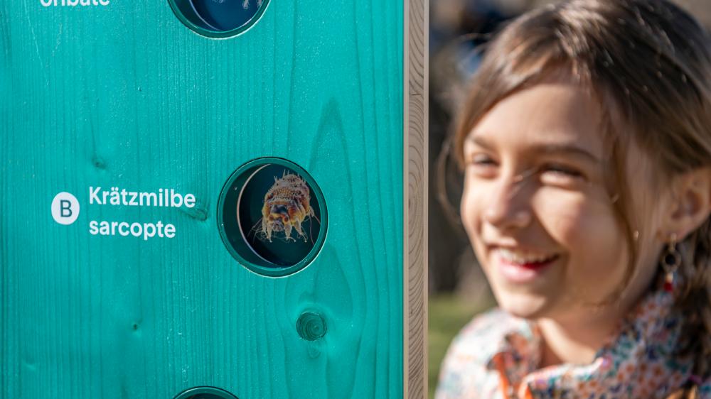 Eine erfahrene Vermittlungsperson führt durch die interaktiven Stationen und regt zum Dialog und Nachdenken an. Dabei werden neugierige Fragen aufgeworfen: Wie gross sind Ameisennester? Warum hinterlassen Schnecken Schleimspuren?