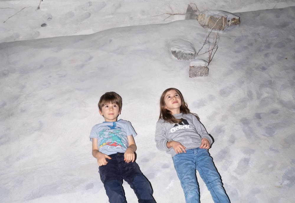 Du steigst die Wendeltreppe hinauf und schwupps bist Du mitten in einer anderen Zeit und rundum warten spannende Geschichten auf Dich. Das riesige Rundbild zeigt eine Dorflandschaft mitten im kalten Winter in der Schweiz, ganz nahe an der Grenze zu Frankreich. Vor 150 Jahren kamen an diesem Ort sehr viele müde Soldaten mit ihren erschöpften Pferden an. Sie alle waren hungrig und froren. Die Menschen in diesem Dorf nahmen die Soldaten bei sich auf, kochten Suppe für sie und pflegten ihre Wunden. Olivia und Salome begleiten Dich auf Deiner Entdeckungsreise.