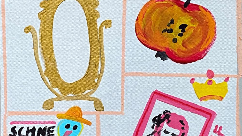 Wir lauschen einer Geschichte und übertragen unsere Assoziationen in schnellen, einfachen Skizzen auf die Leinwand. In vier Feldern gestalten wir malerisch unsere Bildergeschichte und staunen darüber, wie unterschiedlich ein und dieselbe Geschichte in unseren Werken erzählt wird.